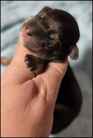 16.10.2025 - Fenka Maiky porodila své první štěňátko a to chlapečka, ve 22.45 h, v barvě černá s pálením, s váhou 230 g.